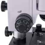<p>Стойката и механизмът за фокусиране на уникалната конструкция предоставят две предимства: компактен размер и възможност за наблюдение на образци с всякаква височина. Микроскопът може да се поставя лесно върху лабораторни мебели с максимална височина 40 cm. Предметната маса с две оси се използва за изследване на малки образци. Регулирането на фокуса се извършва чрез въртене на коаксиалните бутони за грубо и фино фокусиране, които се намират от двете страни на стойката. Механизмите работят плавно и точно. Също може да се регулира затягането на грубото регулиране на фокуса.</p>