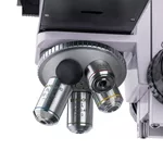 <p>Оптичните елементи на микроскопа са коригирани до безкрайност. Тринокулярната тръба, която се използва за монтиране на камерата, е разположена вертикално. Светлинният лъч може да се насочва към окулярите или към тринокулярната тръба. Камерата не е включена в базовата конфигурация. Продължителната работа с този микроскоп е удобна, понеже бинокулярната глава е наклонена на 30°. На левия окуляр има корекция на диоптрите, за да се адаптират оптичните елементи към зрението на потребителя.</p>