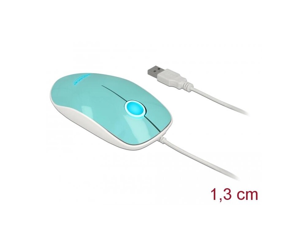 Мишка Оптична мишка DeLock, USB-A, Кабел 1.3 м, USB, 1200 dpi, Tюркоаз 12538P