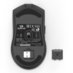Работи както в жичен, така и в безжичен режим, благодарение на USB Type-C конектора и вградената батерия с капацитет 700 mAh. Подвижният 1.8 м кабел позволява лесно превключване между режимите. Тефлоновите крачета осигуряват гладко плъзгане, а ергономичната форма гарантира удобство при продължителна употреба.
