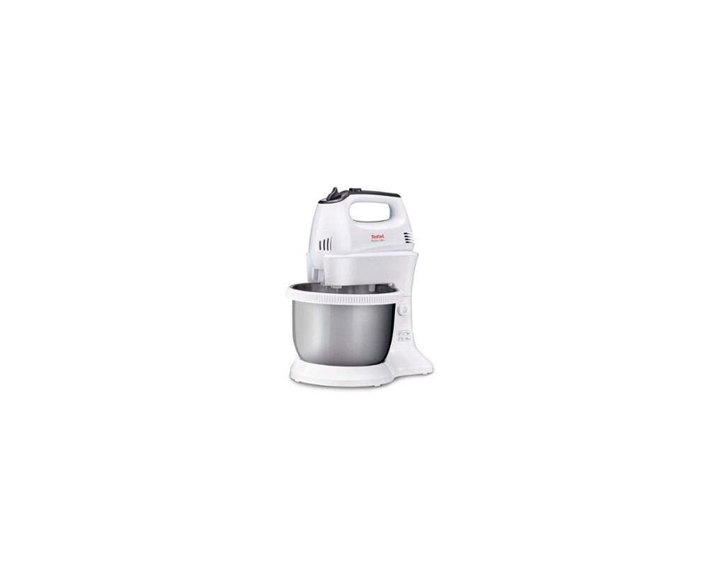 С ръчния миксер Quickmix с купа, разбъркването е лесно, бързо и без усилия! Quickmix е гъвкав, мощен електрически миксер с купа, с който правенето на кексове и торти е бързо и лесно! Мощния 300 W мотор, 5те скорости и турбо функция ви дават перфектен контрол върху всяка рецепта. Окрийте удоволствието от лесното печене с автоматично въртящата се купа. За повече удобство, миксерът може да се ползва и без стойката и купата. С 2 комплекта бъркалки от неръждаема стомана - бъркалки за кексови теста, яйца и сметана и куки за тесто за теста за пица или хляб, ръчният миксер Quickmix с купа е перфектният партньор в приготвянето на печива. Радвайте се на перфектни резултати всеки път!