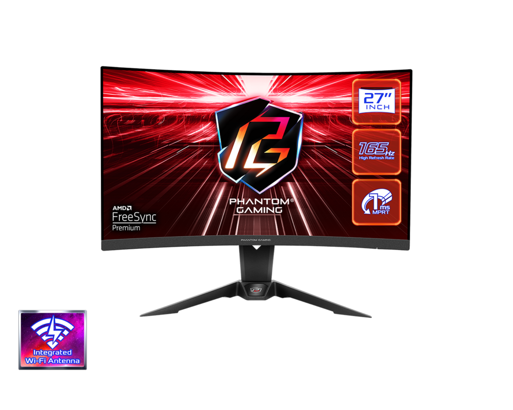 Геймърски Монитор ASRock PG27Q15R2A 27" QHD (2560X1440) 1500R VA, 165HZ, 1MS , 87% DCI-P3 , 2xHDMI, 1xDP, WiFi Antena, Freesync