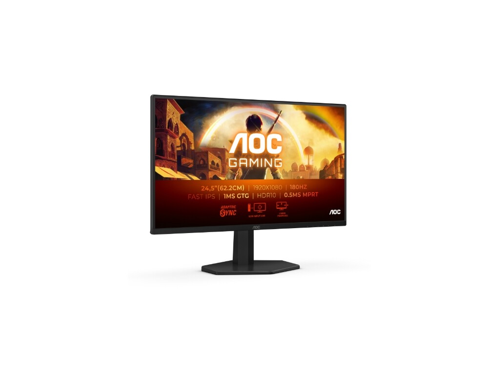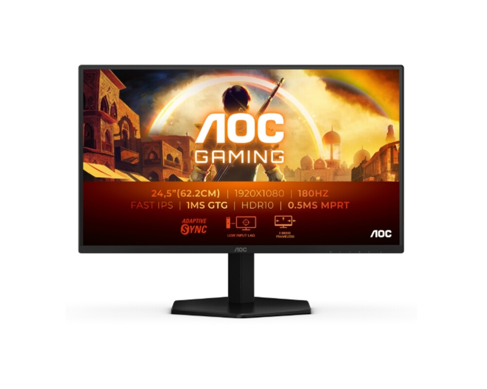 Монитор AOC 25G42E, 24.5'' Gaming monitor, Fast IPS panel, AG, 16:9, FHD 1920 x 1080, PPI 89.9, 0.5ms, 180Hz, 300cd/m2, 1000:1, HDR 10, Adaptive Sync, Flicker Free, Low Blue Light, sRGB, HDMI, DisplayPort, Audio Out, Tilt, VESA 100, Black