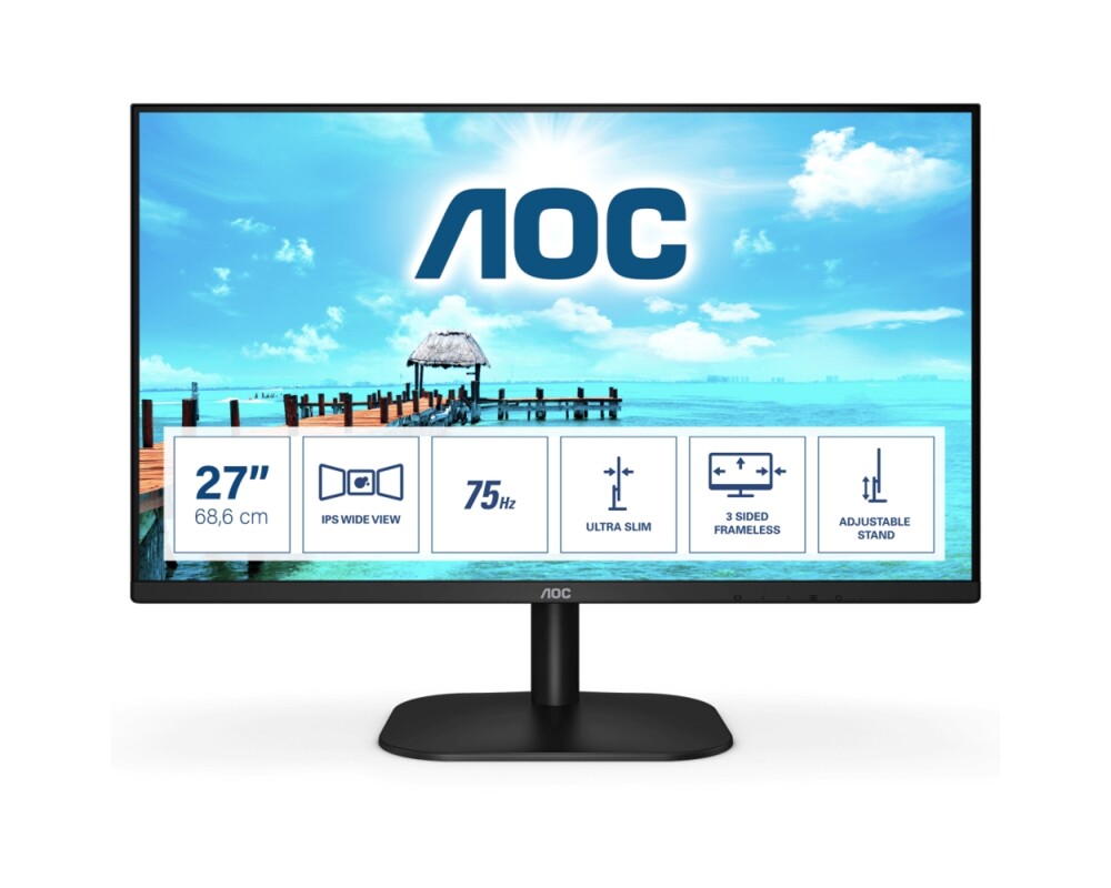 Моделът 27B2H/EU на AOC е оборудван с 27-инчов Full HD VA панел с максимално реалистични цветове. VGA и HDMI връзките предлагат гъвкавост при избор на източник на сигнал. 27B2H/EU е добър претендент за конфигурации с няколко монитора, благодарение на поддръжката на VESA монтаж, 3-странния дизайн без рамки и широките ъгли на видимост. Освен това той е оборудван с технологиите LowBlue и FlickerFree.
