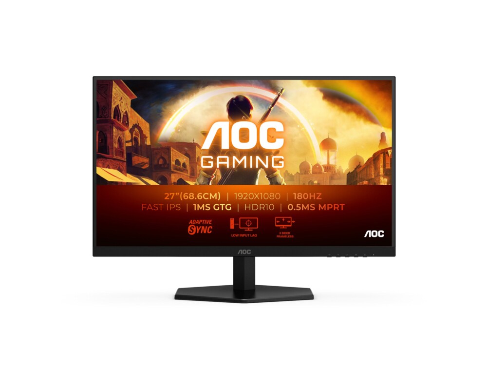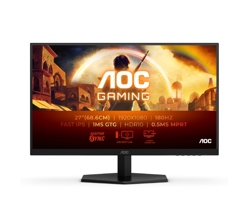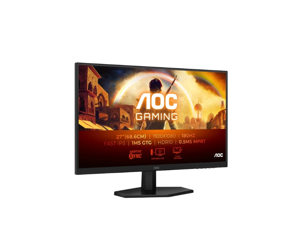 Монитор AOC 27G42E, 27', Gaming monitor, Fast IPS panel, AG, 16:9, FHD 1920x1080, 0.5ms, 180Hz, 300cd/m2, 1000:1, HDR 10, Adaptive Sync, Flicker Free, Low Blue Light , HDMI, DisplayPort, Audio Out, Tilt, VESA 100, Black