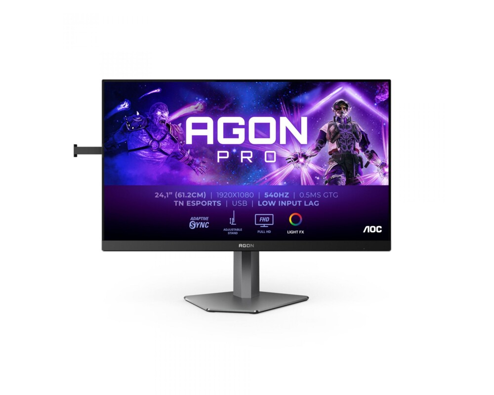 Монитор AOC AG246FK, 23.8'' Gaming monitor, Ultra-Fast TN eSports panel, AG, 16:9, FHD 1920x1080, 400cd/m2, 1000:1, 0.3ms, 540Hz, sRGB, Adaptive Sync, PiP +PbP, Flicker Free, Low Blue Light, 2x HDMI, DisplayPort, 4x USB, Audio Out, HAS, Swivel, Tilt, Pivot, VESA 100, Black