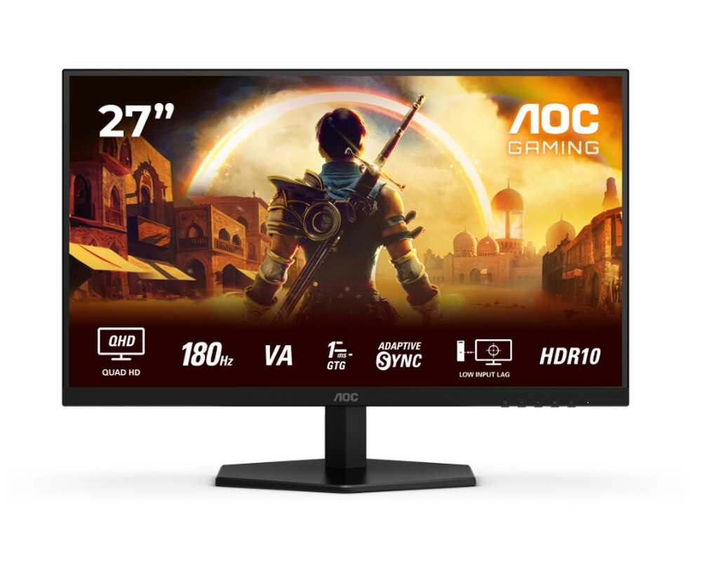Монитор AOC Q27G42XNE, 27' Gaming monitor, Fast VA panel, AG, QHD 2560x1440, 16:9, 0.5ms, 180Hz, 300cd/m2, 5000:1, HDR 10, Flicker Free, Low Blue Light, Adaptive Sync, 2x HDMI, DisplayPort, Audio out, Speakers, Tilt, VESA 100, Black