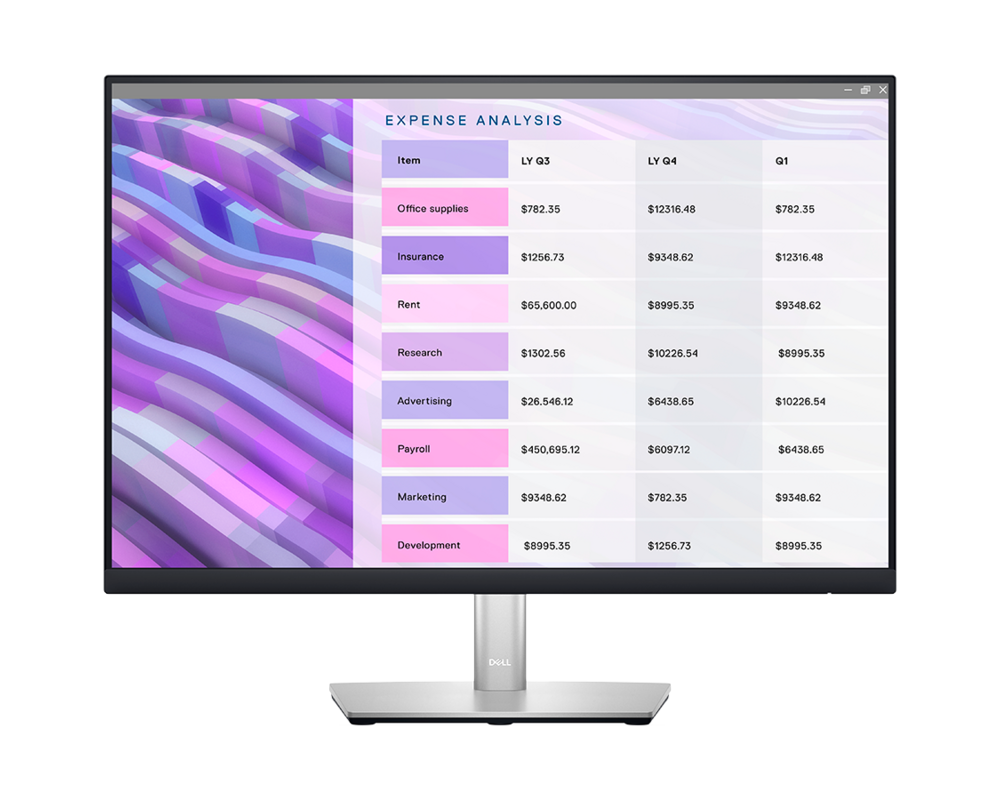 Нашите монитори от серия P с тристранна ултратънка рамка включват подобрена, лесна за използване система за управление на кабели. 73% от професионалистите, които смятат, че спретнатото бюро е важно за тяхната работа, могат да скрият кабелите в щранга на монитора. Освободете място за бюро с нашата малка основа и тънък профил при избрани модели.