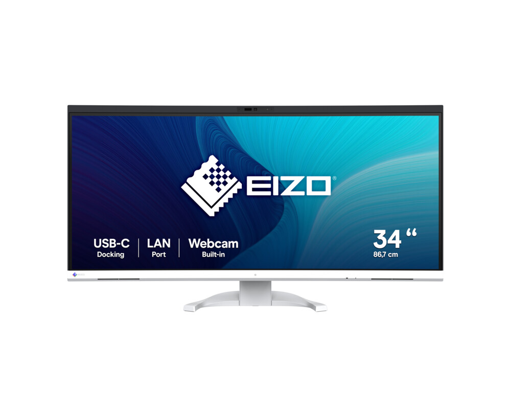 Монитор EIZO EV3450XC-WT, 34.1'' Curved, IPS panel, WQHD 3440 x 1440, 21:9, AG, 300 cd/m2, 1000:1, 2x HDMI, DP, USB-C, LAN, 2x USB, Audio out, Speakers, KVM switch, 5MP webcam, Microphone, Auto EcoView, PbP, Flicker Free, HAS, Swivel, Tilt, VESA 100, White