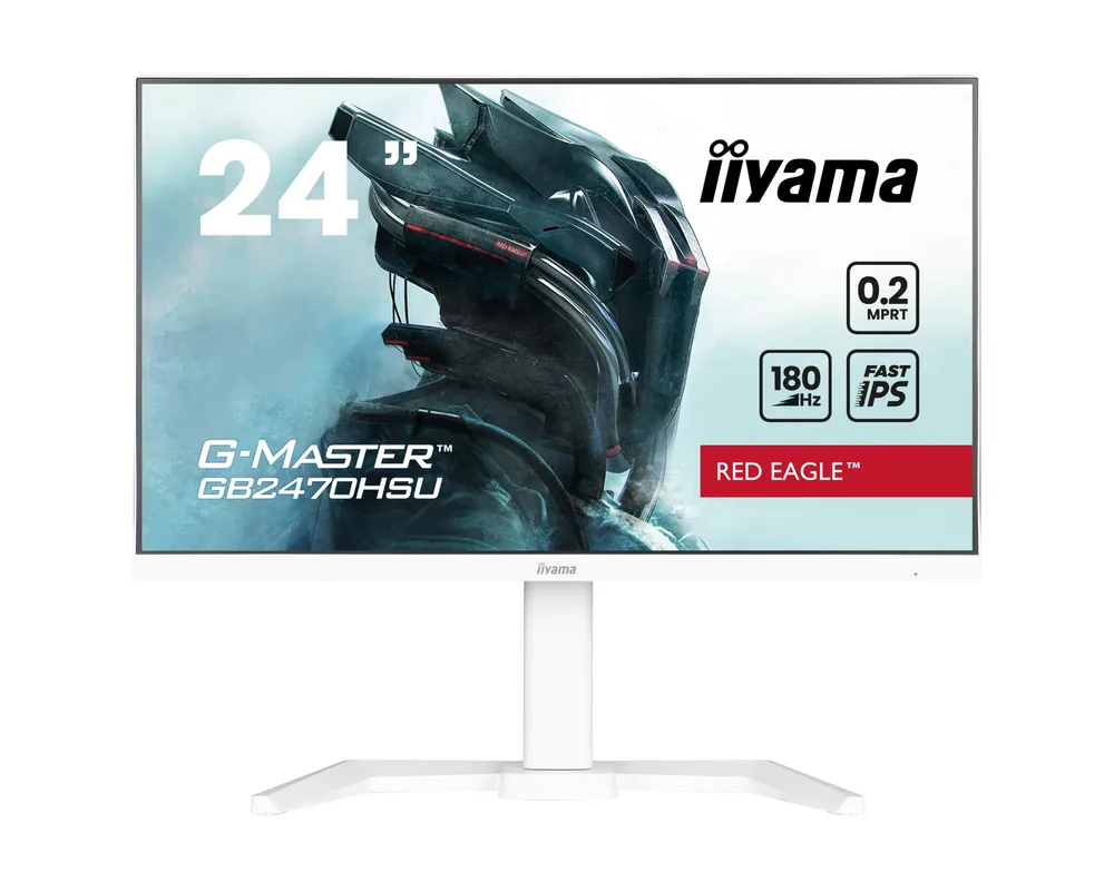 Монитор IIYAMA GB2470HSU-W6, 23.8'' Gaming monitor, Fast IPS panel, 16:9, FHD 1920 x 1080, 300cd/m2, 1000:1, 80M:1, 0.2ms, 180Hz, Adaptive Sync support, Flicker free, Blue light reducer, HDMI, DisplayPort, 4x USB, Speakers, HAS, Swivel, Tilt, Pivot, VESA 100, White