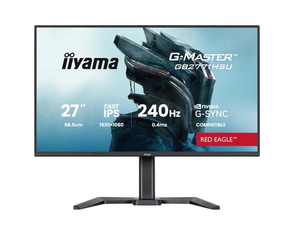 Монитор IIYAMA GB2771HSU-B1, Gaming monitor, 27'' Fast IPS panel, FHD 1920x1080, 350cd/m2, 1000:1, 0.4ms, 240Hz, HDR 10, 2x HDMI, DP, 2x USB, Audio out, Speakers, HAS, Swivel, Tilt, Pivot, Adaptive Sync, G-SYNC compatible, Flicker Free, Blue light reducer, VESA 100, Black