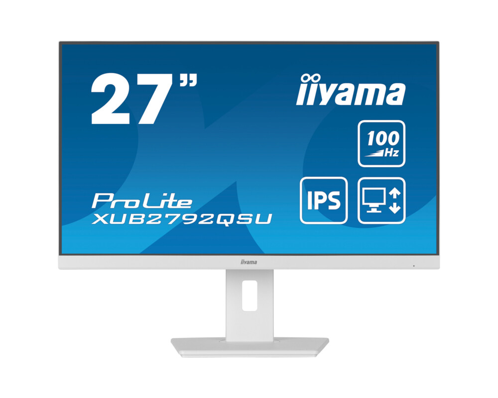 Монитор IIYAMA XUB2792QSU-W6, 27'', IPS LED panel, Anti-Glare, 16:9, 2K QHD 2560x1440, 250cd/m2, 1300:1, 100Hz, 0.4ms, 80M:1, Flicker free, Blue light reducer, FreeSync, HDMI, DP, 4x USB, Speakers, HAS, Swivel, Tilt, Pivot, VESA 100, White