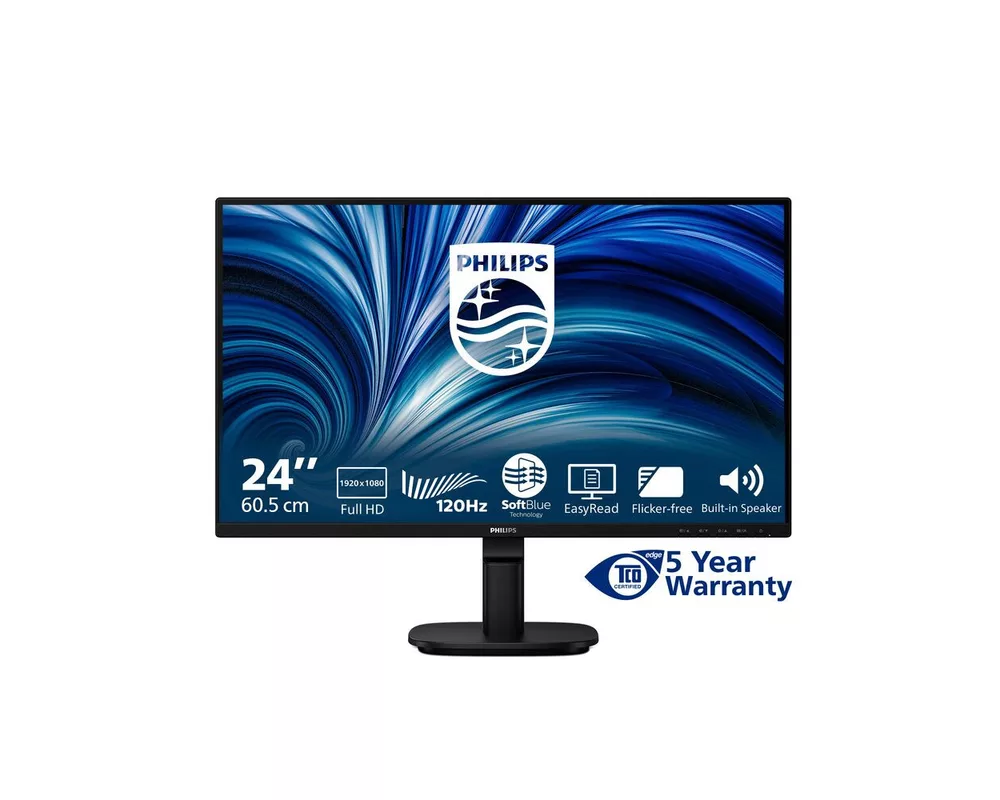 Монитор Philips 24B2N2200/00, 23.8'', IPS panel, AG, 3H, 16:9, FHD 1920x1080, 300 cd/m2, 1500:1, 50M:1, 120Hz, 4ms, SoftBlue, SmartImage, Flicker-Free, VGA, HDMI, DisplayPort, Audio out, Speakers, Tilt, VESA 100, Black