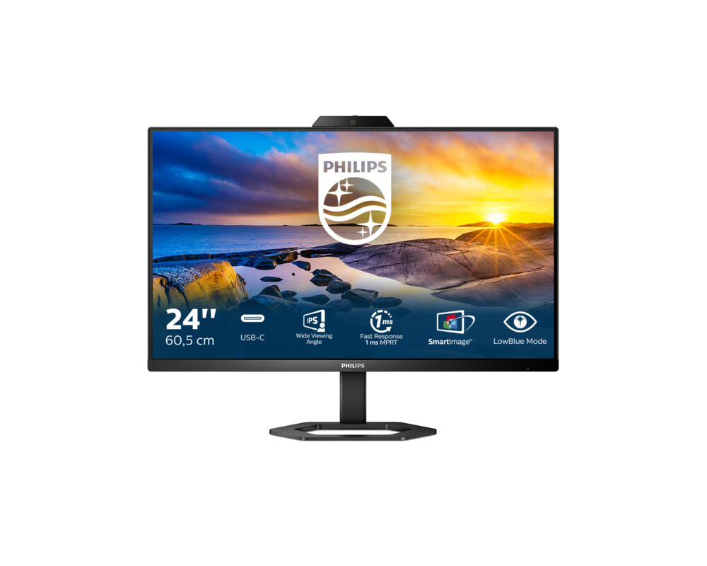 Монитор Philips 24E1N5300HE/00 23.8'' Гейминг монитор, IPS Panel, 16:9, 1920x1080, 1ms, 75Hz, 300cd/m2, 1000:1, Anti Glare, 3H, Free Sync, HDMI, DisplayPort, 4x USB 3.2, USB-C 3.2, HAS, Pivot, Tilt, Speakers, WEB CAM and Microphone, VESA 100, Black