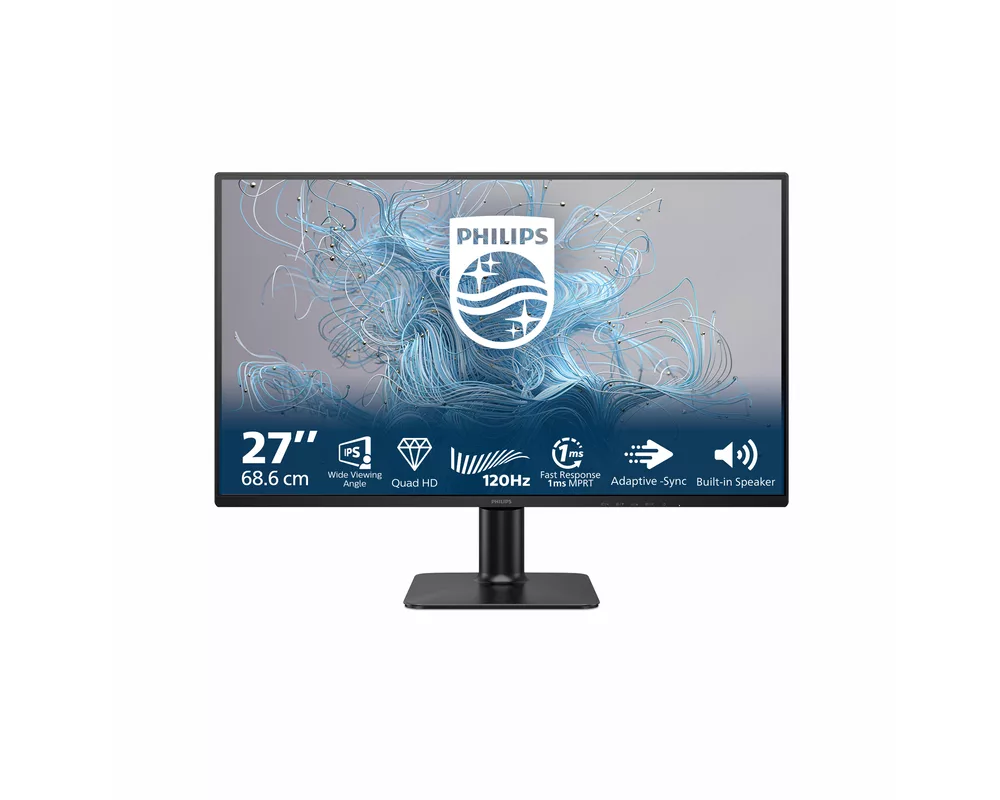 Монитор Philips 27E2N2500/00, 27'', IPS panel, AG, 3H, QHD 2560 x1440, 16:9, 1ms, 120Hz, 300cd/m2, 1500:1, HDR 10, Adaptive Sync, Flicker-Free, Low Blue Mode, HDMI, DP, Tilt, VESA 100, Energy class C, Black