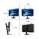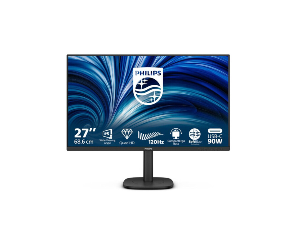 Монитор Philips 27B2U3601/00, 27'', IPS panel, AG, 16:9, QHD 2560x1440, 350cd/m2, 1500:1, 50M:1, 120Hz, 4ms, SoftBlue, Flicker Free, Adaptive Sync, sRGB, USB-C, HDMI, DP, LAN, DP Out, HBR3, 4x USB, Speakers, HAS, Swivel, Tilt, Pivot, VESA 100, Black