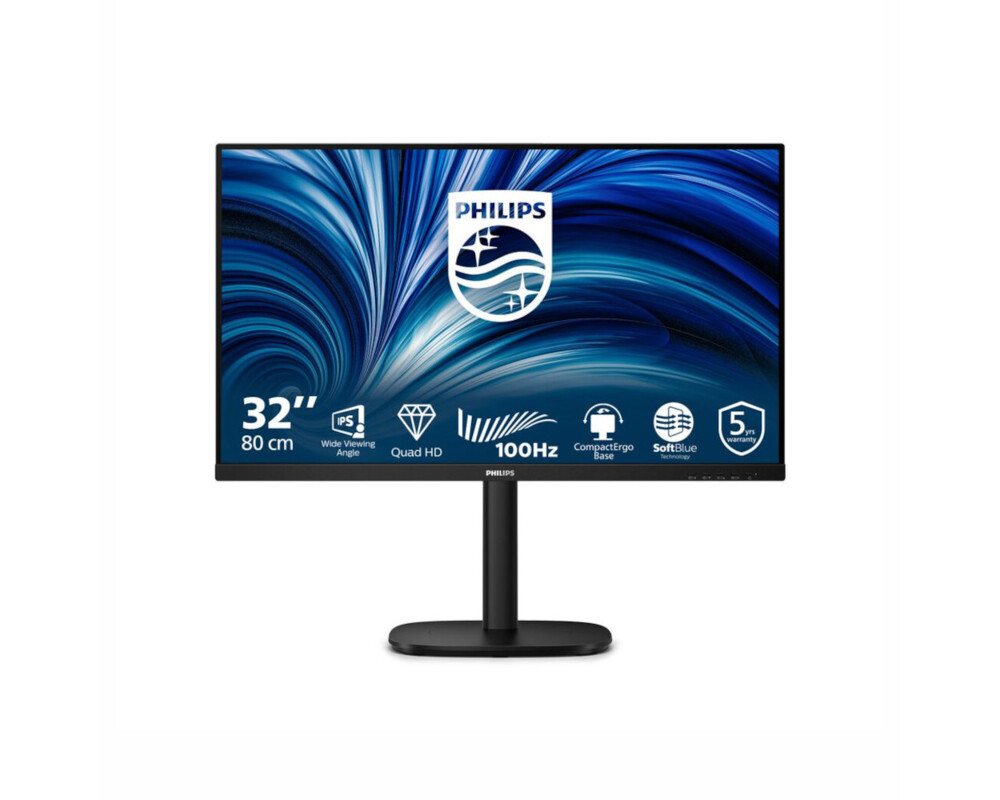 Монитор Philips 32B2N3500/00, 31.5'' IPS WLED panel, AG, 16:9, 2K QHD 2560x1440, 350cd/m2, 1000:1, 4ms, 100Hz, SoftBlue, SmartImage, Adaptive Sync, 2x HDMI, DP, 4x USB, Audio out, Speakers, SmartControl, HAS, Swivel, Tilt, Pivot, VESA 100, Energy class C, Black