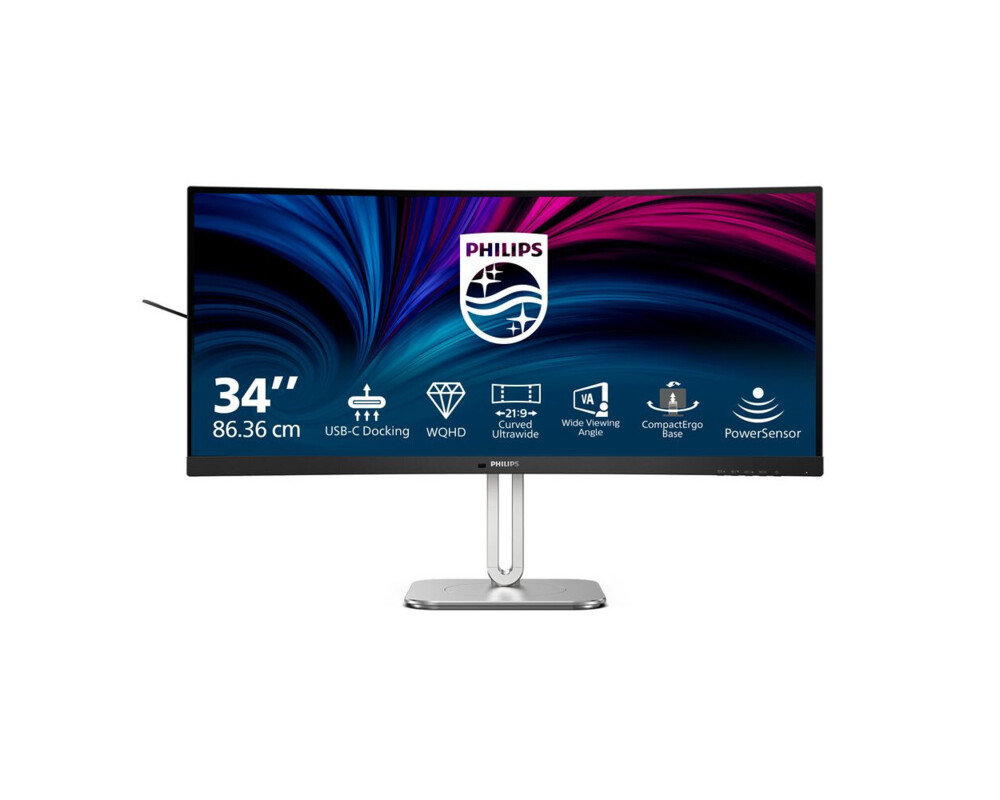 Монитор Philips 34B2U5600C/00, 34'' VA Curved panel, AG, 21:9, WQHD 3440x1440, 300cd/m2, 4000:1, 4ms, 60Hz, sRGB, KVM, sRGB , SmartContrast, Flicker-Free, Adaptive sync, 2x HDMI, DP, 2x USB-C, 4x USB, LAN, HBR3, Speakers, HAS, Swivel, Tilt, VESA 100, Black/Grey