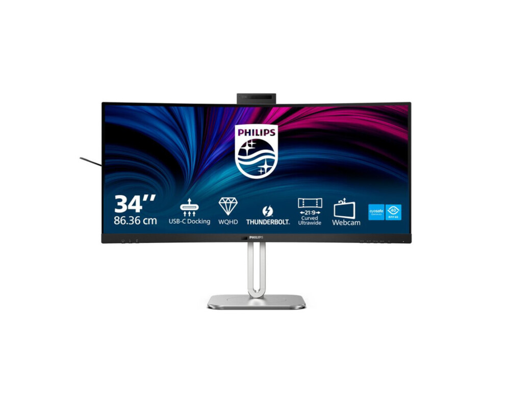 Монитор Philips 34B2U6603CH/00, 34'' VA Curved panel, AG, 21:9, WQHD 3440x1440, 450cd/m2, 4000:1, 4ms, 100Hz, sRGB, KVM, SoftBlue, MultiView, Flicker-Free, HDR 400, Adaptive sync, 2x HDMI, DP, Thunderbolt 4, 2x USB-C, 4x USB, LAN, HBR3, Speakers, HAS, Swivel, Tilt, Webcam, Black/Grey
