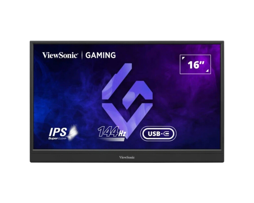 Монитор ViewSonic VX1654, 15.6'' Portable Gaming Monitor, IPS, 16:9, AG, FHD 1920 x 1080, 250cd/m2, 800:1, 4.67ms, 144Hz, AMD Free Sync, 3H, mini HDMI, USB-C, Speakers, Adjustable kickstand, Black