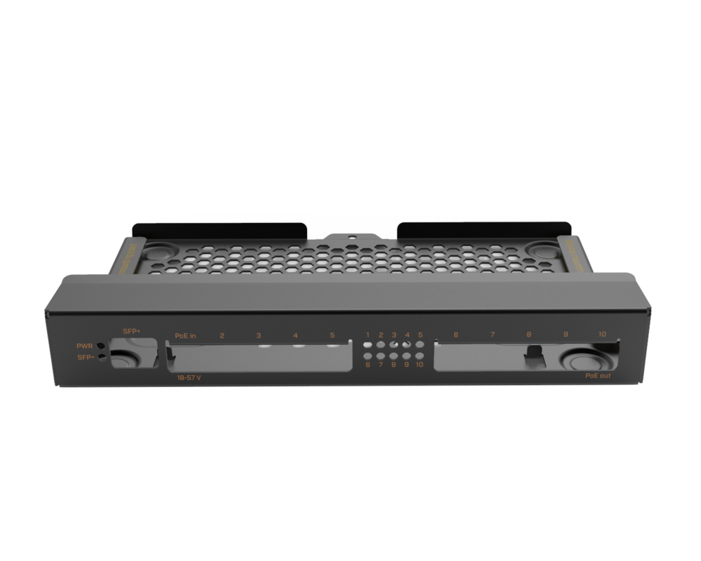 Комплектът за стенен монтаж RB4011 е направен за защита на вашето устройство и неговите Ethernet портове от неоторизиран достъп. Изработена от издръжлива стомана, стойката се прикрепя към стена и позволява включване на Ethernet кабелите, преди рутерът да бъде монтиран вътре. Това означава, че след като устройството е обезопасено, няма лесен начин за изключване на кабелите или преместване на устройството.