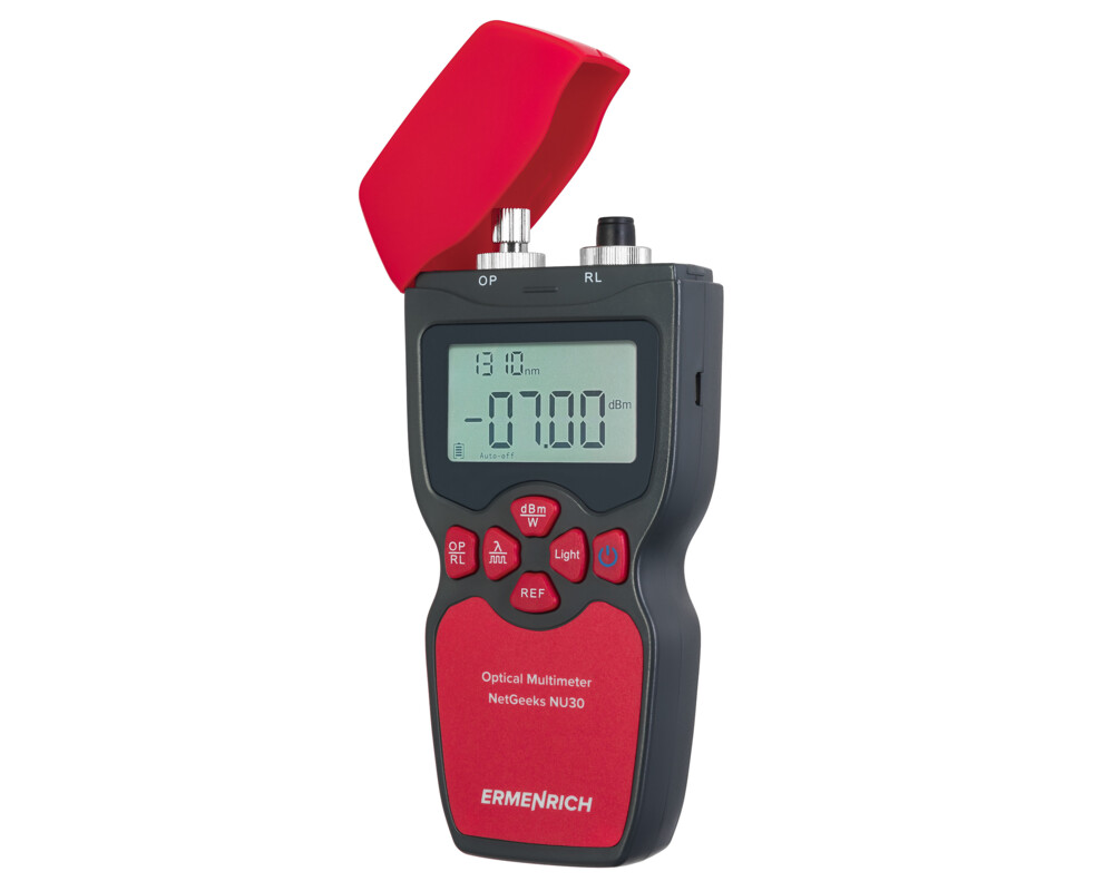 <p>Ermenrich NetGeeks NU30 е оптичен мултиметър с функция VFL, който ще се превърне в задължителен инструмент за специалистите по проектиране, полагане и монтиране на оптични комуникационни линии. Чрез този уред можете да измервате изходната мощност на източника на системата с оптични влакна, да измервате загубата на оптична мощност в кабела и да откривате и локализирате прекъсвания. Уредът е подходящ за домашна и професионална употреба.</p>