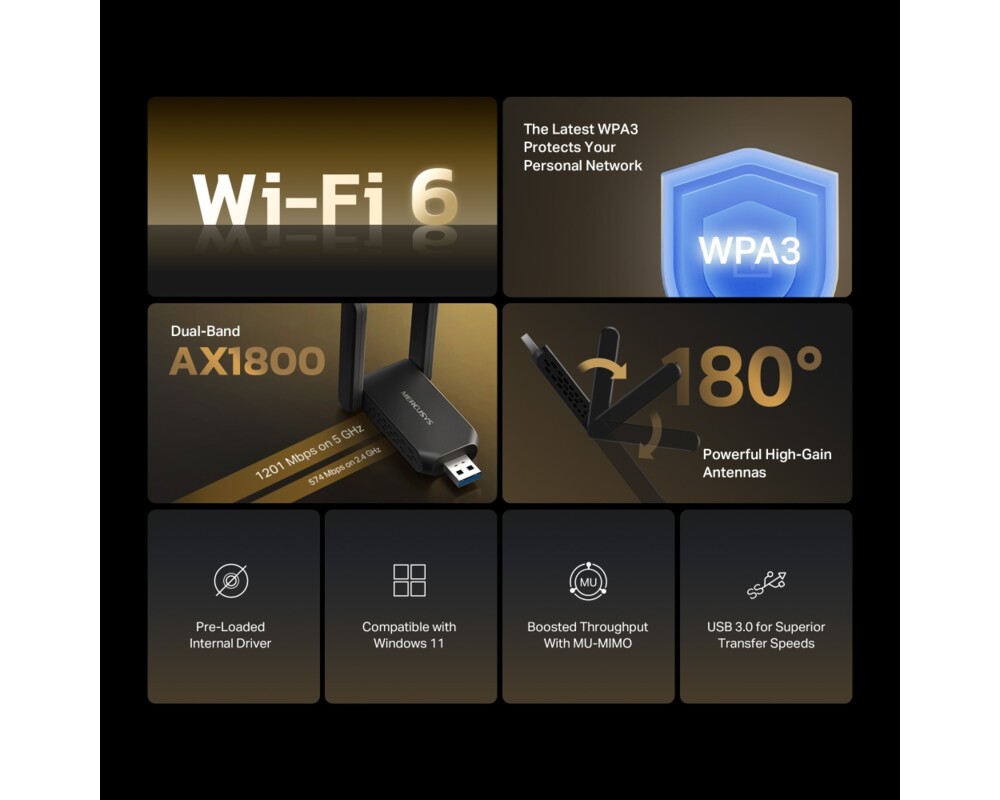Безжичен 2-лентов USB адаптер с висок коефициент на усилване Mercusys MA72XH AX1800