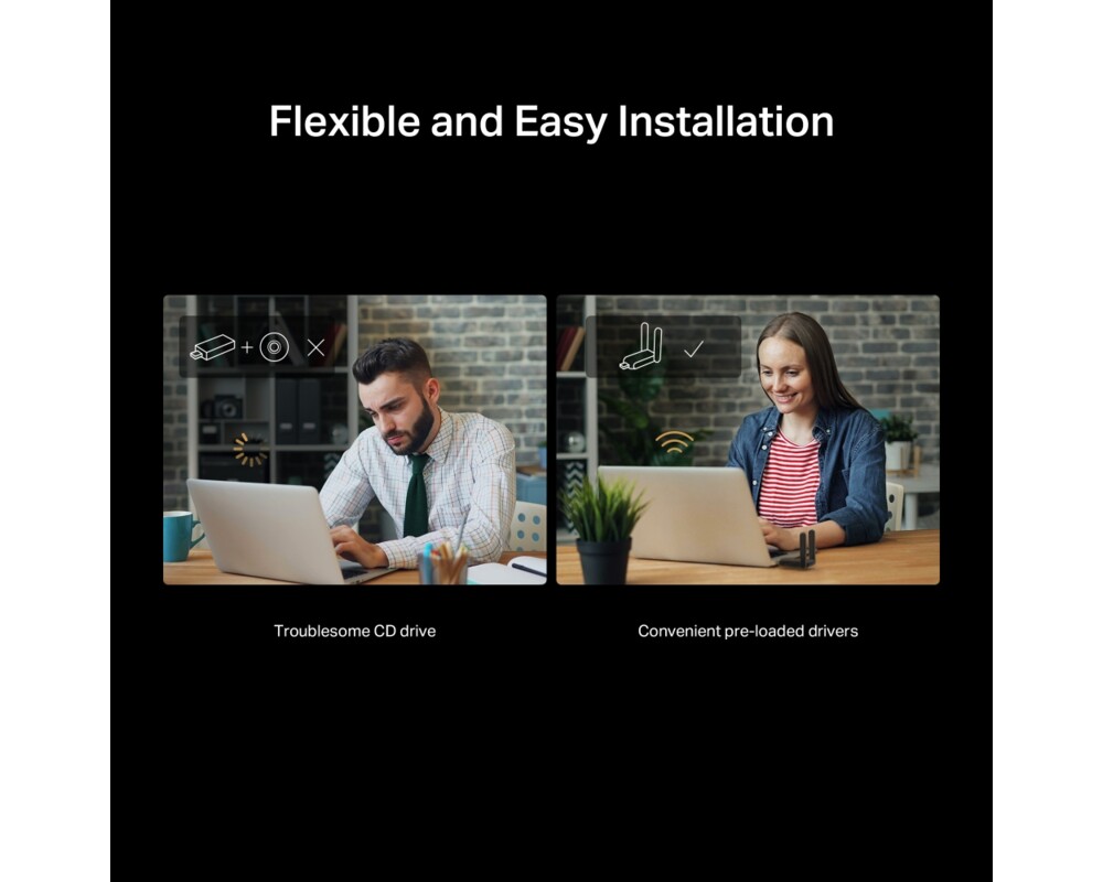С вградените драйвери за Windows, просто свържете MA72XH към вашия компютър и се насладете на бърза безжична мрежа за секунди.