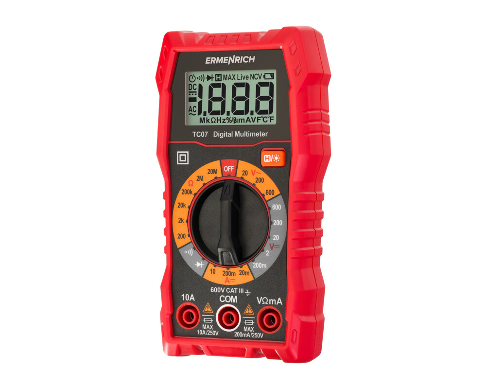 <p>Мултиметърът Ermenrich Zing TC07 с класически въртящ се превключвател е предназначен за измерване на постоянно и променливо напрежение, постоянен ток и съпротивление. Функционалните му възможности са достатъчни за изпълнение на повечето задачи у дома, както и за извършване на основни измервания в работата на професионален електротехник.</p>
