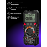 <p>Освен извършването на измервания мултиметърът може да извършва различни проверки: проверка на диоди, проверка на мрежи за къси съединения и прекъсвания, локализиране на скрити проводници, контакти под напрежение и откриване на фазови проводници. Резултатите от измерванията се показват на екрана в цифрова форма или на графична скала. Екранът има фоново осветление за условия на слаба осветеност, а функцията „Задържане“ Ви позволява да запазите на екрана резултатите от последното измерване.</p>