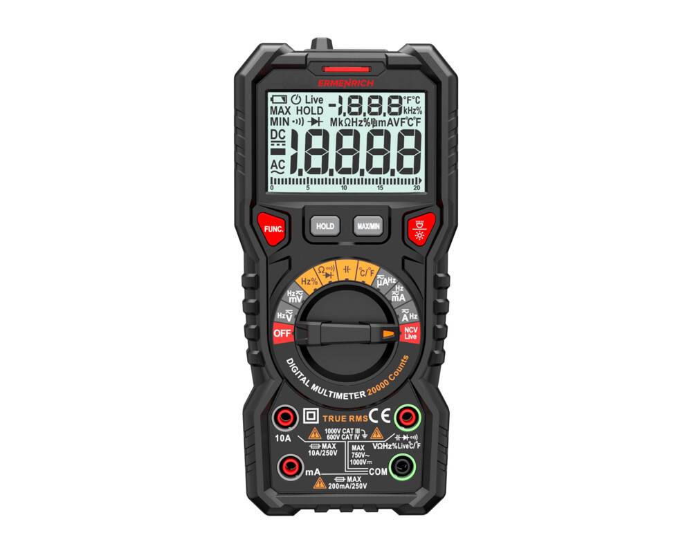 <p>Цифровият мултиметър Ermenrich Zing TC32 е полезен във всички ситуации, когато трябва да се измерват ток, напрежение и съпротивление, така също честота, капацитет и коефициент на запълване на импулси. Датчик с термодвойка измерва температурата. Този мултиметър е предназначен за проверка на елементите на електрическото оборудване, тестване на електрическо оборудване и устройства, така също за поддръжка на електрически мрежи. Ermenrich Zing TC32 може да се използва от професионалисти, така също и от начинаещи, благодарение на неговите многобройни функции.</p>