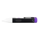 <p>Това е безконтактен тестер за напрежение. Устройството може да проверява или ниско (12–48 V), или високо (48–1000 V) променливотоково напрежение и да подава различни сигнали, когато такова бъде открито. Звуковият сигнал варира по височина и светлините мигат или светят постоянно.</p>