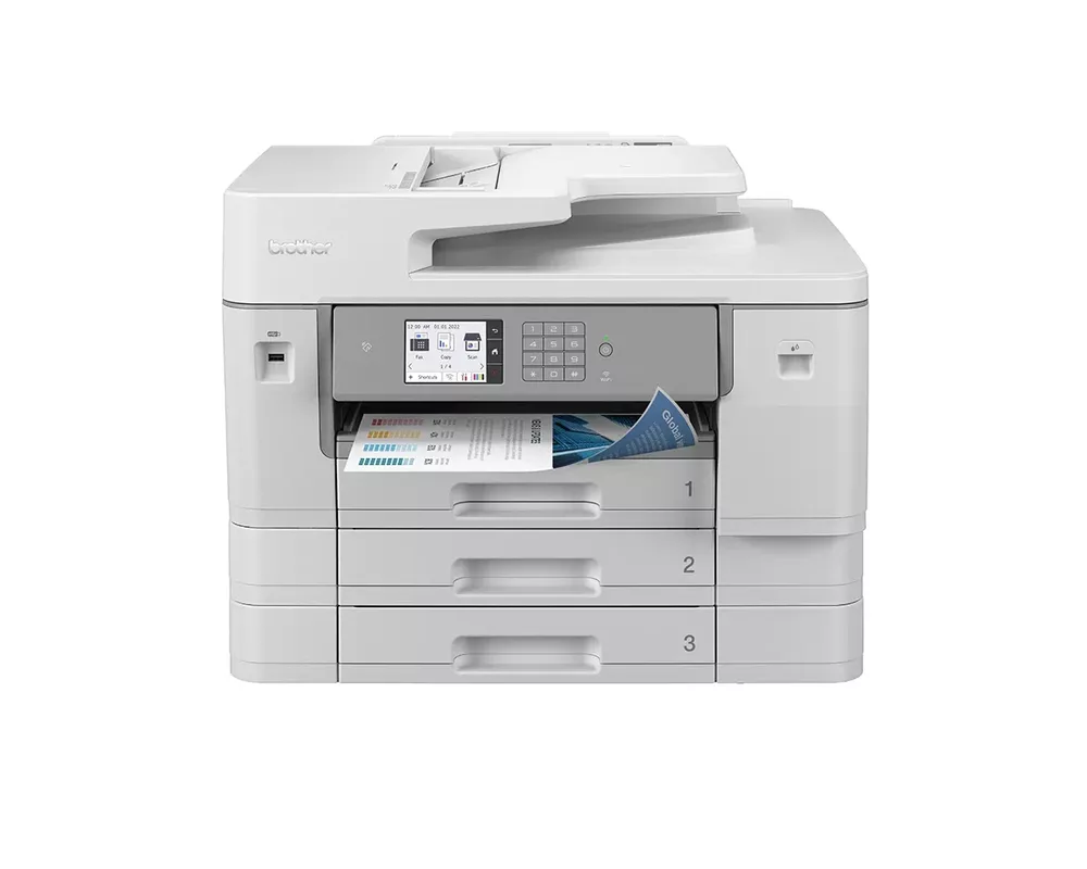 Професионално A3 цветно мастиленоструйно мултуфункционално устройство с множество възможности за работа с хартията. Висококачествени A3 печат, сканиране, копиране и факс в едно мастиленоструйно устройство. С най-новата технология на печатащата глава получавате бързина, надеждност и ярък цветен печат. В допълнение към това, големият капацитет на хартията прави MFC-J6957DW идеалното решение за един зает офис. MFC-J6957DW е предназначен за бизнесът, който се нуждае от А3 мултифункционално устройство с ниска консумация на електрическа енергия и без компромис с качеството. Използвате по-малко електрическа енергия и не губите време, получавайки първа разпечатка за по-малко от 5 секунди, а заедно със скоростта на печат от до 30ipm имате доверен бизнес партньор, на който винаги може да разчитате. С големия капацитет на хартията до 750 листа, като стандарт вече не е нужно да губите време в постоянно презареждане на устройството, а да се концентрирате върху основното във вашия бизнес. С мултифункционалната тава за 100 листа може да ползвате различни видове хартия до 220gsm, това заедно с автоматичното листоподаващо устройство за 50 листа ви дава бързи и изгодни A3 печат и сканиране. С множество бизнес функции и характеристики MFC-J6957DW предлага бърз и сигурен печат директно от вашето мобилно устройство чрез NFC свързаност. Настройте бързи опции за сканиране с интуитивния потребителски интерфейс за директно сканиране към желани офис приложения. 8.8 см цветен сензорен дисплей ви позволява следене нивото на мастилото на екрана. Надежден и дълготраен. MFC-J6957DW е добър избор с изгодна цена на устройството и печат на страница, плюс множеството бизнес функции. Позволете ни да се погрижим за вашия печат с избора от услуги за управление на печата (MPS), позволяващи автоматизирана подмяна на консумативите, отстраняване на неизправности, намаляване на времето за изчакване и увеличаване на производителността за ваше пълно спокойствие.