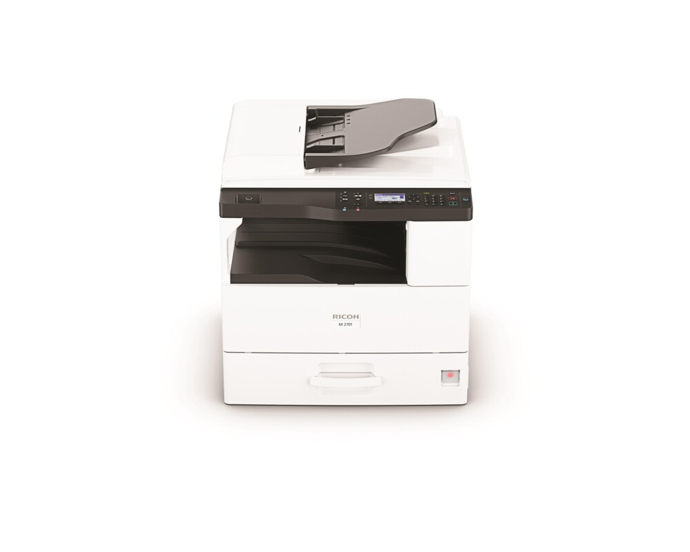RICOH M 2701 е устройство, което печата със скорост 27 стр/минута. Предлага се с тава хартия за 500 листа с опция до 1600листа.Устройстворо разполага с ARDF,което автоматизира сканирането и дава възможност за копиране на лична карта и сканиране към имейл. Двустранният печат е възможен от трите тави за хартия/ако са инсталирани/ , като могат да се подават различни размери хартия,пликове и етикети.