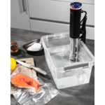 Термоизолацията на дръжката ще ви предпази от изгаряне при максималните работни температури на Sous-Vide. Има функция за автоматично изключване в случай на недостатъчно или прекомерно количество вода, прегряване и в края на автоматична или ръчна програма.
