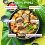 steam brown simmer gentle cooking reheat cooking programs; 150 BG recipes; Keep warm function; Delayed start |