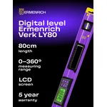<p>Ermenrich Verk LY80 е цифров нивелир за прецизно измерване на ъгли и позициониране. Той е подходящ за широка гама от приложения като строителство, ремонт, металообработване и дървообработване, монтаж на машини и механизми и т.н. Подходящ е и за битова употреба (монтаж на мебели, поставяне на рафтове, шкафове с панти, корнизи и т.н.). Ъгломерът осигурява прецизни измервания в диапазон от 0–360° (4x90°). Уредът има функция за нулиране и функция за задържане.</p>