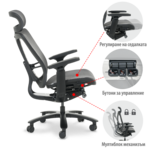 Ергономичен стол NELSON е идеален избор за дълги часове работа, като предлага висок стандарт на ергономичен комфорт и модерна функционалност. Седалката и облегалката са изработени от здрава и дишаща мрежа, която осигурява добра вентилация и издръжливост. Столът разполага с мултиблок механизъм, който позволява заключване в няколко позиции, като същевременно предлага опция за регулиране на силата на люлеене. Допълнителните функции включват комфортен подглавник с регулиране на височината, 3D подлакътници, регулируема лумбална опора и слайд механизъм за коригиране дълбочината на седалката. Столът има здрава алуминиева основа, която гарантира стабилност и дълъг живот. Пълна информация за размерите и характеристиките на модела може да видите в таб/поле "Техническа информация".