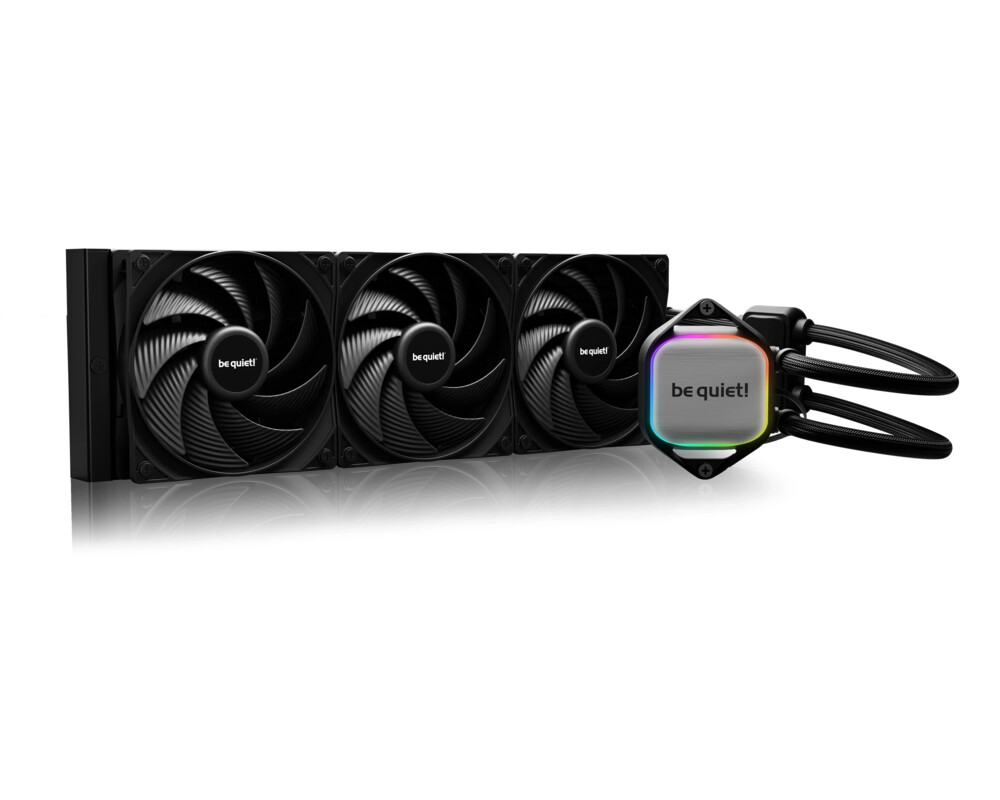 | Други характеристики | 3 Pure Wings 3 120mm PWM high-speed fans, ARGB illumination on the cooling block, Doubly decoupled PWM pump reduces vibrations to an absolute minimum, Easy-to-access refill port and included coolant bottle |