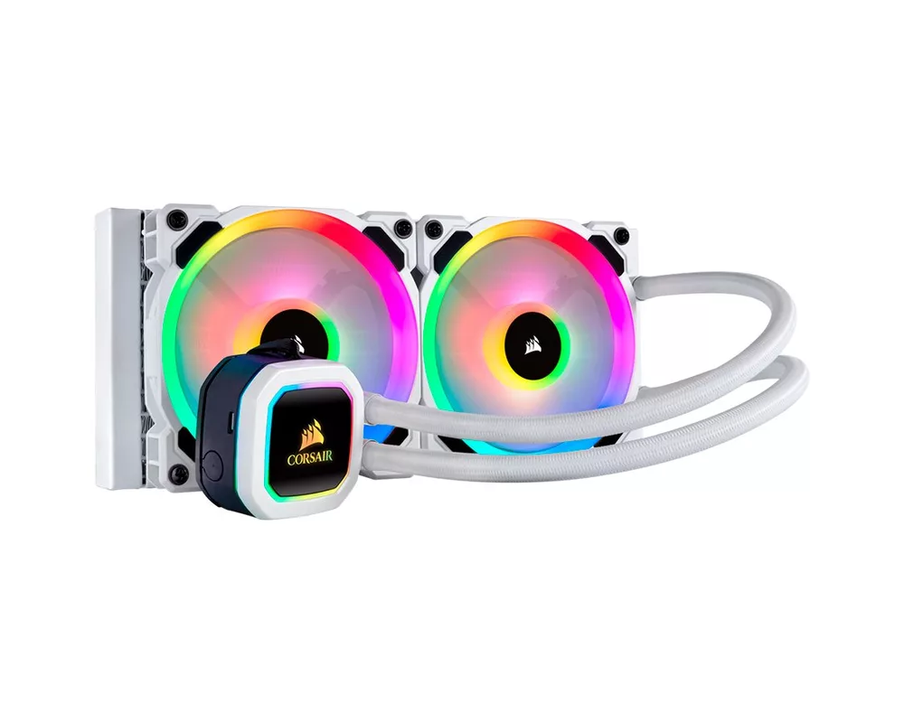 - Corsair Hydro Series H100i RGB PLATINUM SE 240mm Liquid CPU Cooler, an all-in-one liquid CPU cooler with a 240mm radiator and vivid RGB lighting in brilliant white housing, built for extreme CPU cooling, dual LL120 RGB PWM fans (ID: 164883)