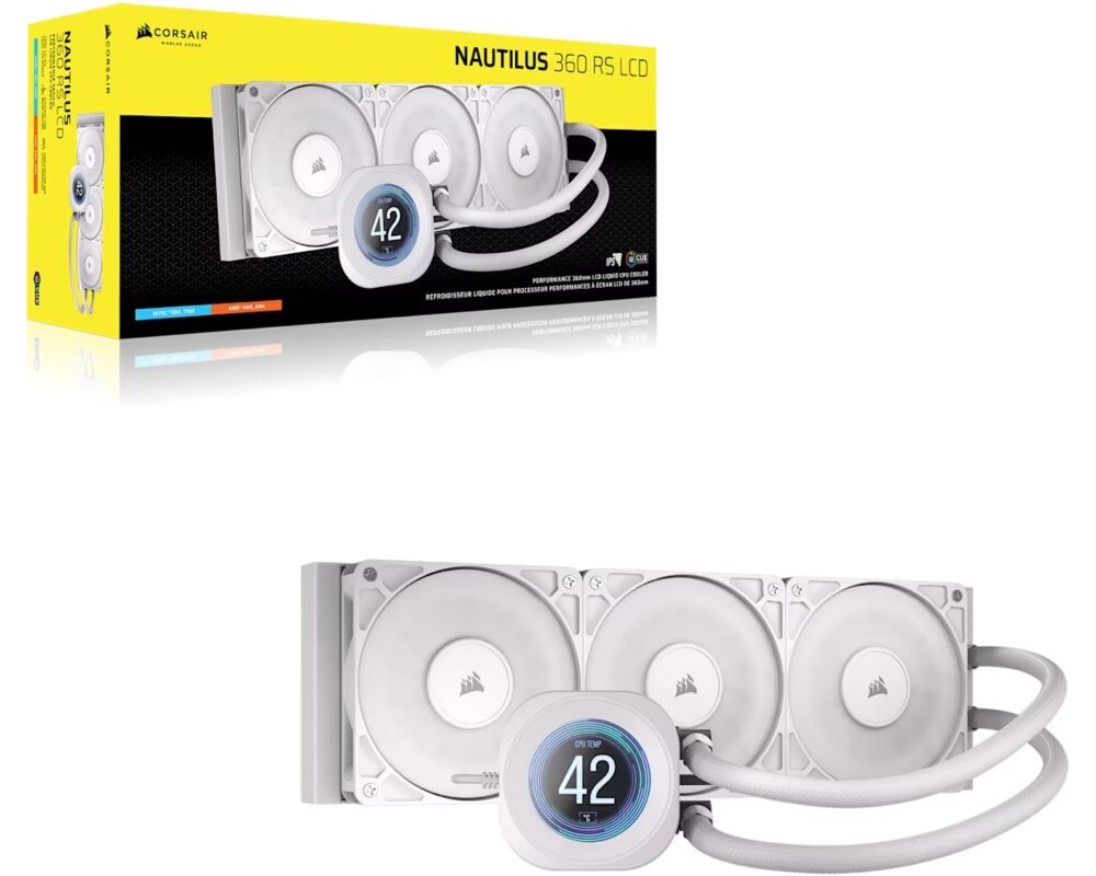 - CORSAIR NAUTILUS 360 LCD White, 360mm Radiator, Liquid CPU Cooler (ID: 855308)