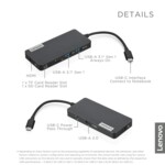 Lenovo USB-C 7-в-1 хъб с 1 x USB2.0/ 1 x HDMI 1.4/ 1 x четец на TF карти/ 1 x четец на SD карти/ 1 x USB-C порт с байпас за зареждане на лаптоп