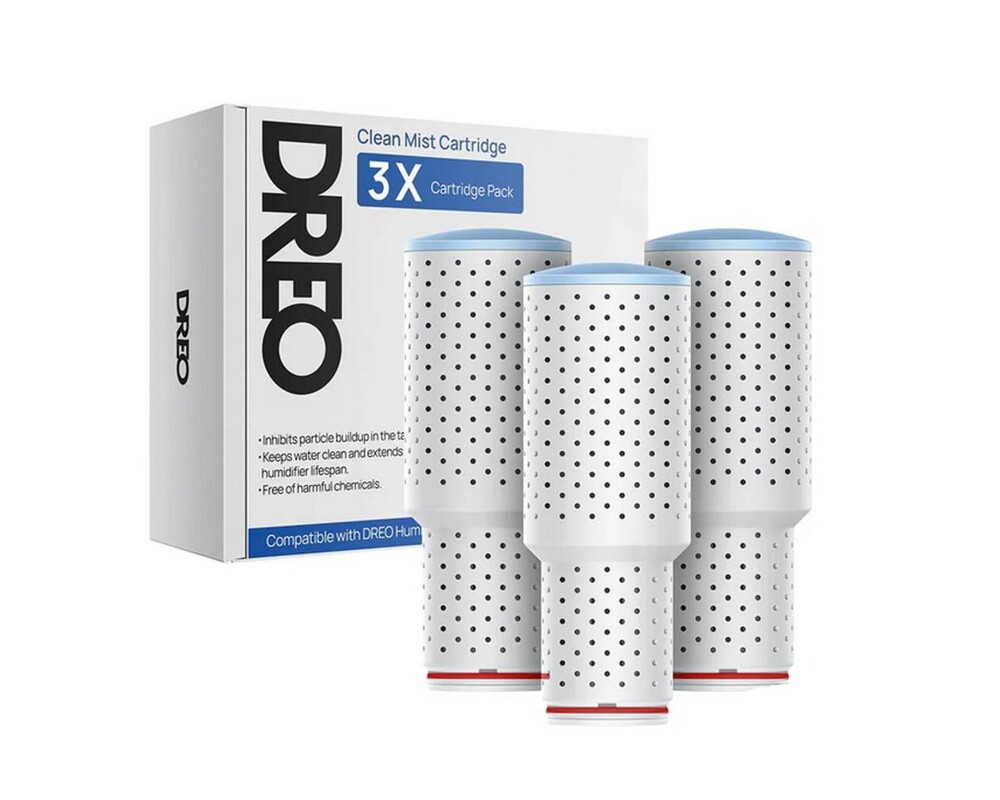 Пречистващи касети: Трислойната почистваща система със сребърни йони помага за пречистването на всяка капка вода, преди тя да бъде освободена във въздуха. Чрез намаляване на замърсителите във водата, освободената мъгла е по-здравословна и по-комфортна, идеална за хора с чувствителни синуси или дихателни проблеми. Освен това чрез тези касети намалявате количеството на натрупани замърсители в самия овлажнител за въздух, което ви помага при почистване и удължава живота му, подобрява производителността, като същевременно осигурява по-комфортен овлажняващ ефект. Една касета е достатъчна за 150 литра вода като приложението ще ви извести с напомняне за живота на консуматива.