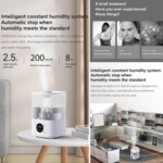 - Възможност за настройване на желаното ниво на влажност в помещението в диапазон 45-90%, като при достигане овлажнителят автоматично спира работа
