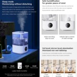 Уредът за овлажняване Xiaomi Lydsto има модерен дизайн, голям контейнер за вода - 2.5 литра, 3 нива на овлажняване, ниско ниво на шум, Нощен режим, възможност за задаване на желано ниво на влажност, дисплей с полезни индикации, защита при наклон или празен контейнер, функция за напомняне, ако водата в контейнера е изчерпана.