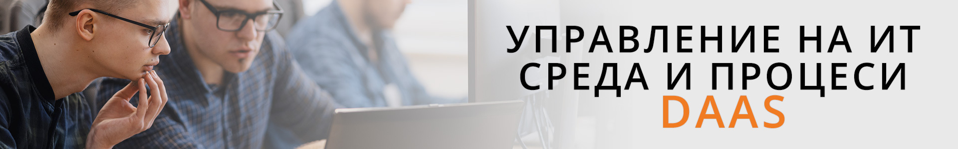 Управление на ИТ среда и процеси/Device as a Service (DaaS) е технологично решение, осигуряващо необходимото крайно оборудване, поддръжка, персонализация и всички необходими ИТ услуги за Вашия бизнес. DaaS Ви позволява на организациите да използват своите системи по-ефективно. Спестява време и средства, като премахва ненужна покупка на активи.