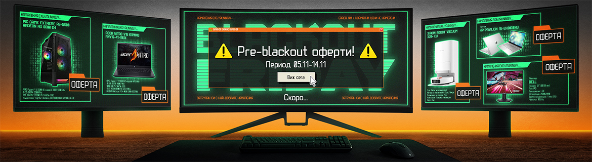От 05.11.2024г. в 09:00ч. до 23:59ч. на 14.11.2024г. "ПИК Компютър" ООД (PIC.bg) провежда промоционална кампания под името "Pre-Blackout оферти" на www.pic.bg за територията на Република България. Продажбата на продуктите от кампанията "Pre-Blackout оферти" ще се провежда само и единствено съгласно по-долу описаните условия и срокове.