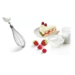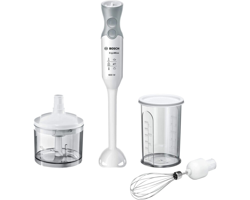 Няма да позволите този ръчен блендер да е далеч от погледа ви. 600 W: мощен мотор за бързи и перфектни резултати дори с най-твърдите продукти. Ергономичен корпус със SoftTouch дръжка и големи бутони: перфектно пасва на дланта и осигурява комфортно използване и сигурно захващане. Включени чопър и бъркалка: повече разнообразие от вкусна, домашна храна. QuattroBlade система от ножчета и AntiSplash функция: осигурява ефективно пасиране без пръски. С 12 степени на скоростта и допълнителен турбо бутон: прецизна настройна на скоростта за приготвянето на всяка рецепта.