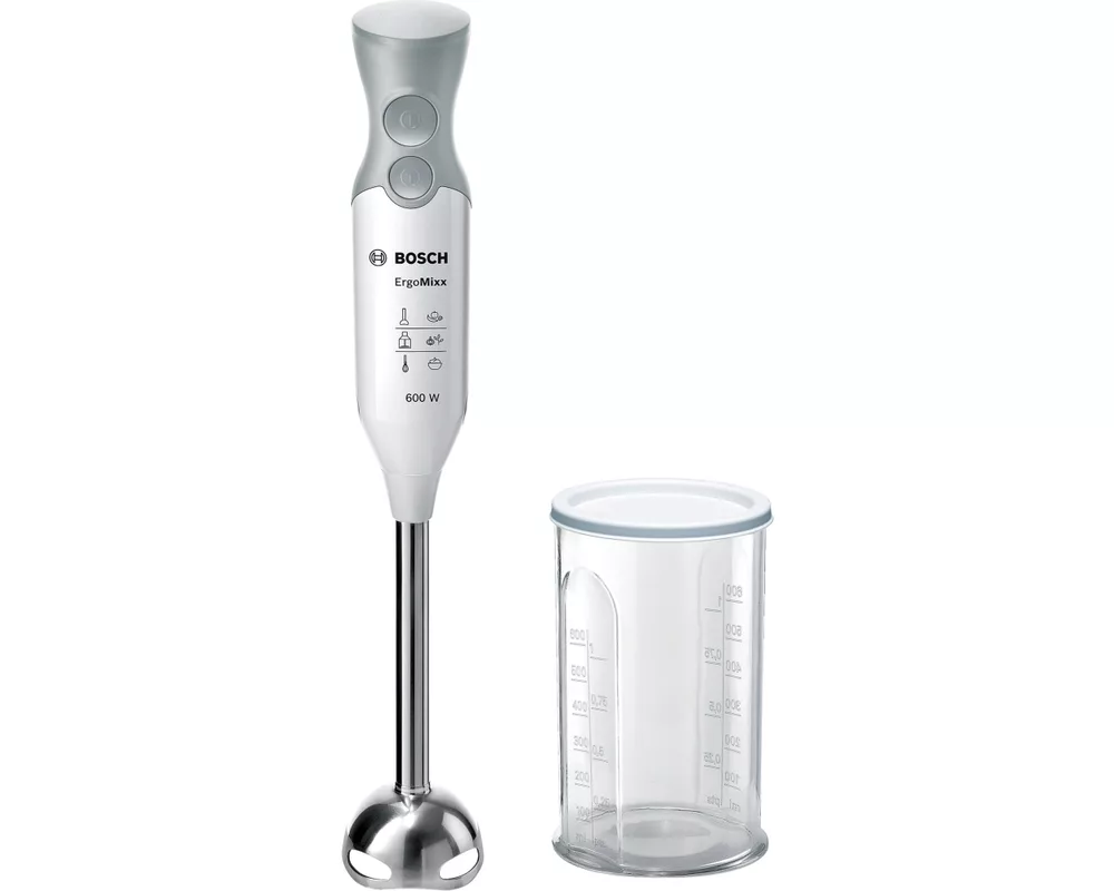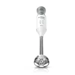 Няма да позволите този ръчен блендер да е далеч от погледа ви. Изключително лек със специална ергономична форма на дръжката и удобно, меко покритие без хлъзгане. Накрайник с блендер от неръждаема стомана с острие с четири ножчета QuattroBlade за лесно пюриране, смесване и кълцане. Практичен механизъм с щракване за разглобяване на блендера, подходящ за миене в съдомиялна, за по-лесно използване и почистване. Мощен 600 -ватов мотор за перфектни резултати. С допълнителна турбо настройка за максимална мощност с докосване на един бутон.