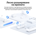- Лесно разширяване на мрежата — Увеличете покритието, като добавите още Powerline адаптери